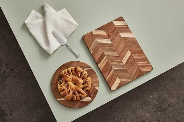 Skærebrættet fra Aida vil med sit smukke sildebensmønster med det samme løfte dit køkken og bord.