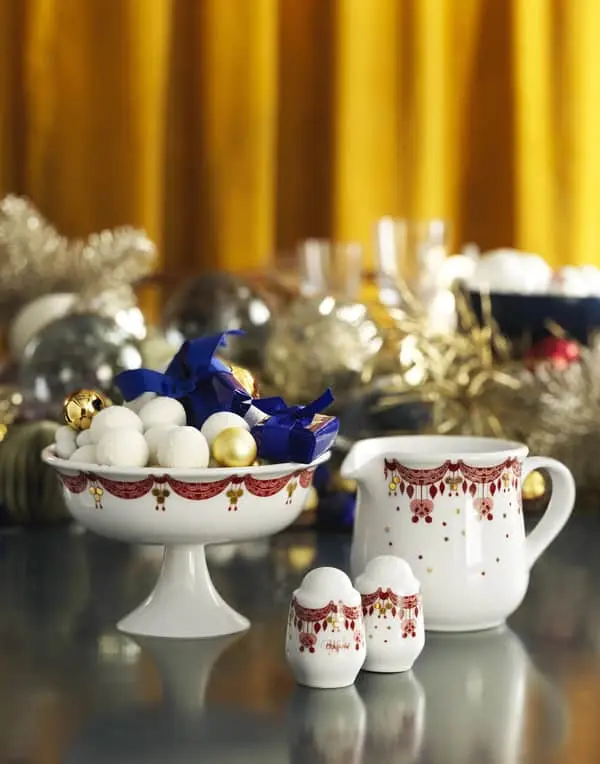 Byd julen og dine gæster velkommen med Bjørn Wiinblads smukke julestel iklædt røde guirlander.