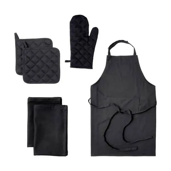 Kom godt fra start i dit køkken med dette tekstilsæt fra Cook & Baker. Sættet indeholder i alt 6 dele: 2 stk. grydelapper, 1 stk. forklæde, 2 stk. viskestykker, 1 stk. grillhandske.