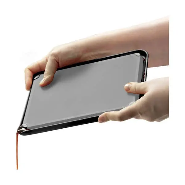 Fledge fra Dreamfarm er det smarteste dobbeltsidede skærebræt. Fledge har nemlig unikke flip-up kanter, der forhindrer mad i at falde eller rulle af siderne, når det transporteres til en gryde, skål eller bord til servering. Fledge har også skridsikre gummifødder på begge sider, knivvenlige mønstre på begge sider og en generøs juicerille til udskæring på undersiden.