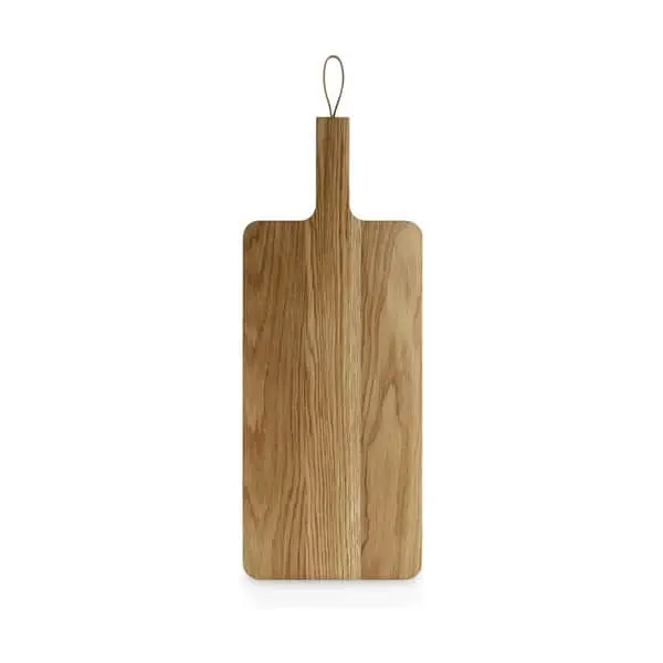 Fristende tapas er lige til at servere på Nordic Kitchen skærebræt fra Eva Solo. Skærebrættet i lyst egetræ har det klassiske skaft, der gør det let at bruge til rustik servering af små lækkerbidder. Du kan også bruge skærebrættet til tilberedning i køkkenet fx til udskæring af kød eller grøntsager. Skærebrættet har læderstrop til let og dekorativ opbevaring. Skærebrættet tåler ikke opvaskemaskine, men er let at rengøre med vand og sæbe. Lad skærebrættet lufttørre i opret stilling, inden du pakker det væk, og giv det regelmæssigt en smule olie. Materiale: egetræ og læder. Bredde: 44 cm. Længde: 22 cm. Design: Claus Jensen & Henrik Holbæk, Tools.