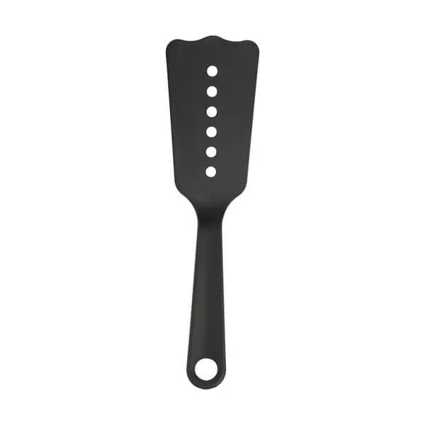 Køkkenværktøjet i kunststof tåler op til 220°C, men tåler ikke at blive efterladt og glemt i en glohed gryde eller pande.
