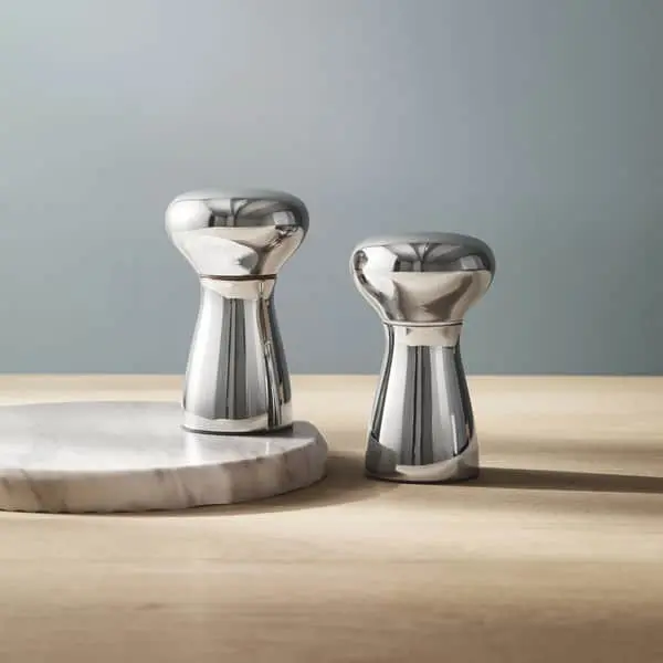 Med sit skulpturelle design vil dette Alfredo salt- og peberkværnssæt fra Georg Jensen være et elegant indslag på dit spise- eller køkkenbord.