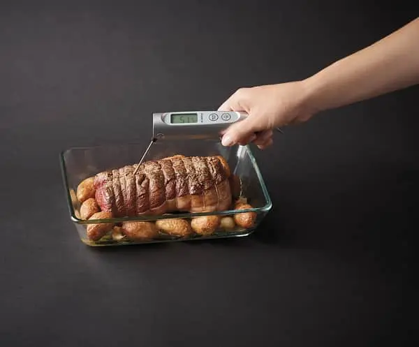 Termometret tåler ikke opvaskemaskine, og kan ikke benyttes i ovn med lågen lukket eller i en mikrobølgeovn.