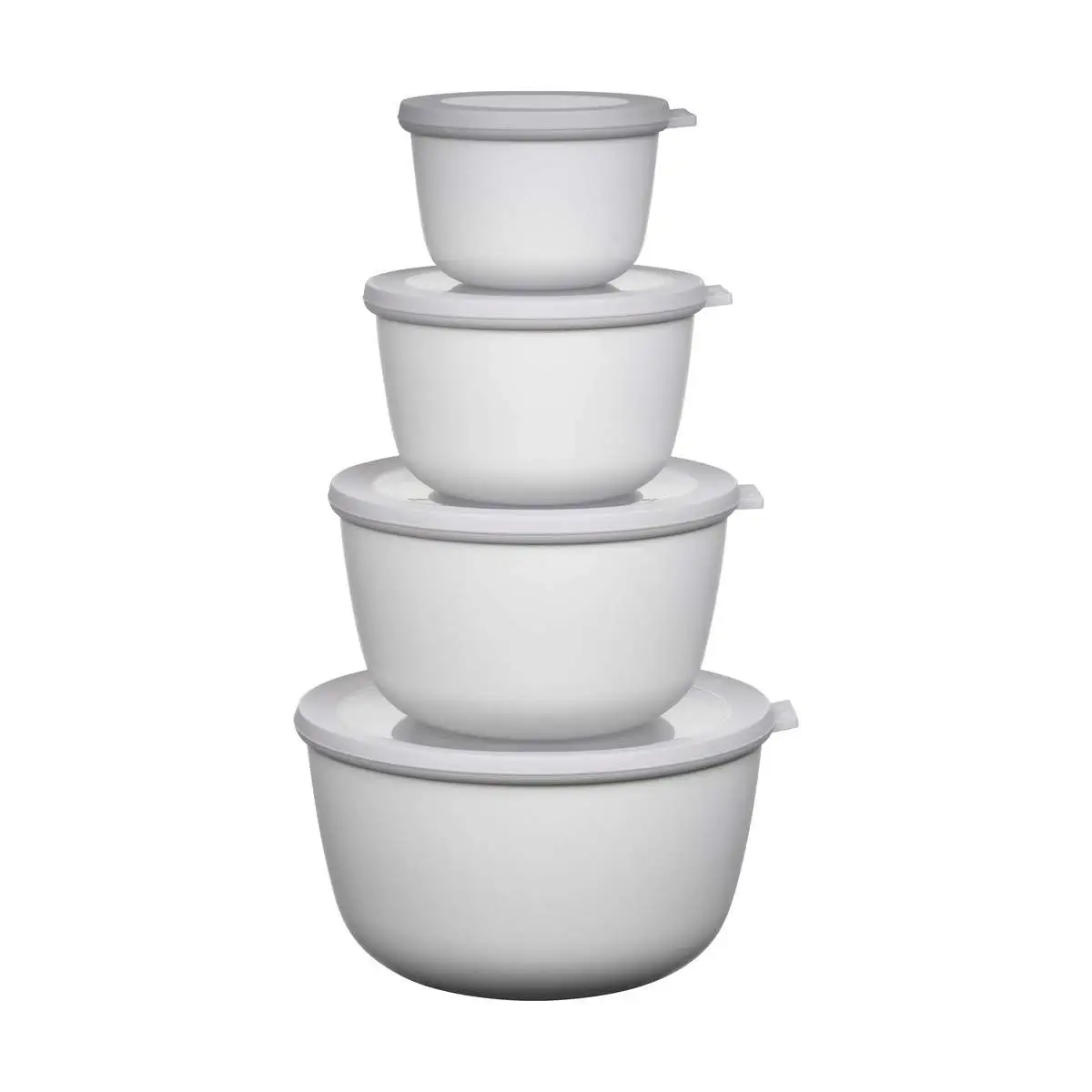 Med Cirqula skålesættet fra Mepal får du fire praktiske skåle med tilhørende låg i den smukke farve Nordic White. Cirqula skålene fra Mepal er handy all-round skåle, som du kan bruge til både opbevaring og servering. Skålene er lavet i det holdbare PP-plast og tåler både fryser, mikroovn og opvaskemaskine.