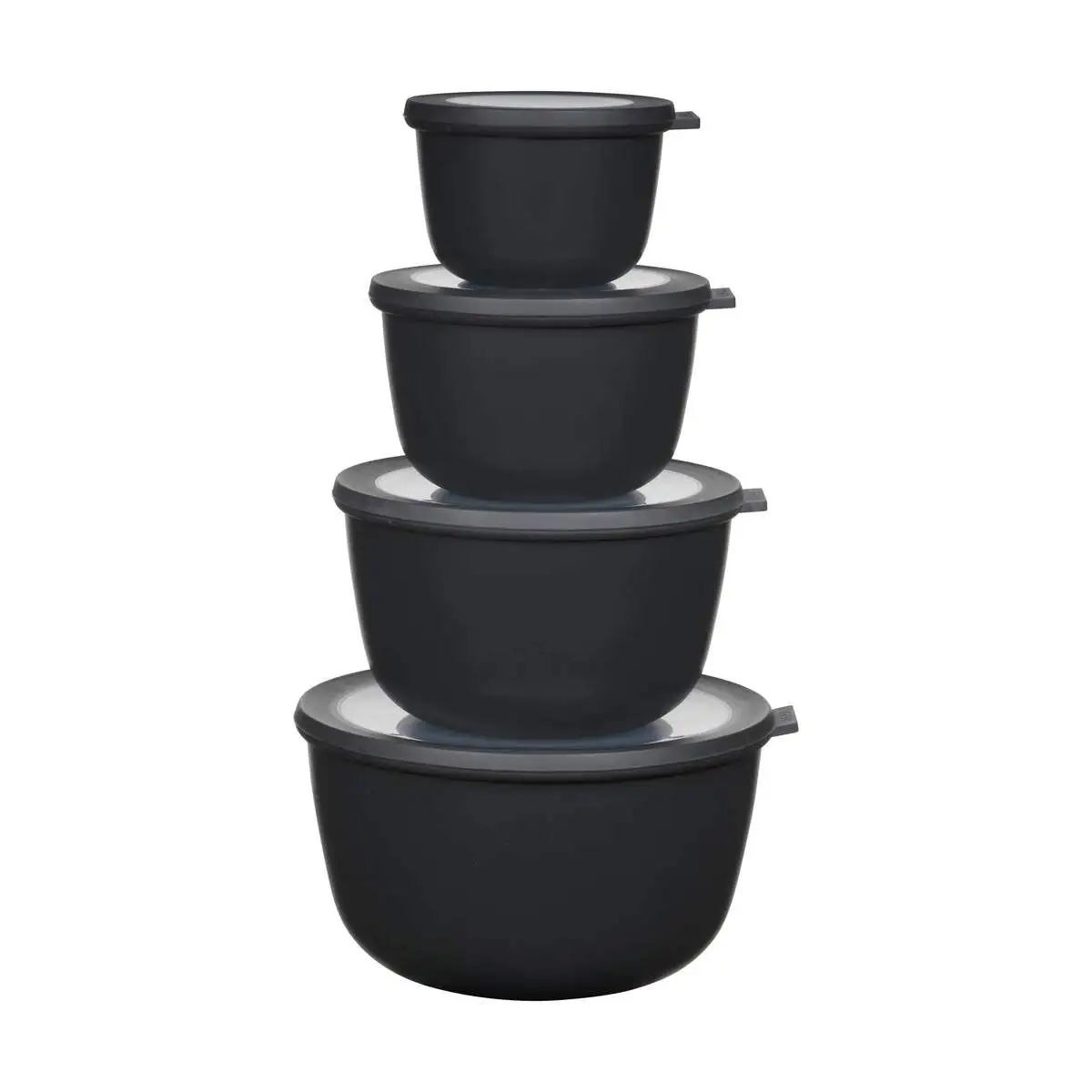 Med det sorte Cirqula skålesæt fra Mepal får du fire praktiske skåle med tilhørende låg. Cirqula skålene fra Mepal er handy all-round skåle, som du kan bruge til både opbevaring og servering. Skålene er lavet i det holdbare PP-plast og tåler både fryser, mikroovn og opvaskemaskine.