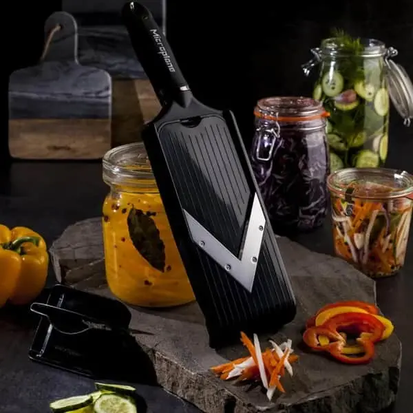 Med mandolinjernet fra Microplane kan du både skære mandolin og julienne-udskæringer af dine grøntsager. Mandolinjernet er super skarpt og effektivt og kan nemt holdes med den ene hånd. Det er desuden skridsikkert.Vi anbefaler, at du vasker det op i hånden