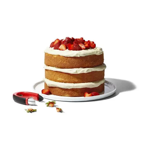 En lækker jordbærkage, en drink med jordbær-stykker eller en sommersalat med jordbær. Uanset hvad du putter dine søde jordbær i, bliver det en leg at rense jordbær med OXO Good Grips jordbærstilk fjerneren.