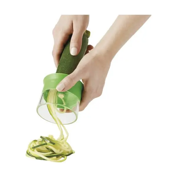 Har du lyst til et hurtigt, men sundt måltid? Med denne håndholdte spiralizer fra OXO Good Grips laver du hurtigt og nemt den lækreste squash-spaghetti, som kan serveres med eksempelvis pesto og kylling.
