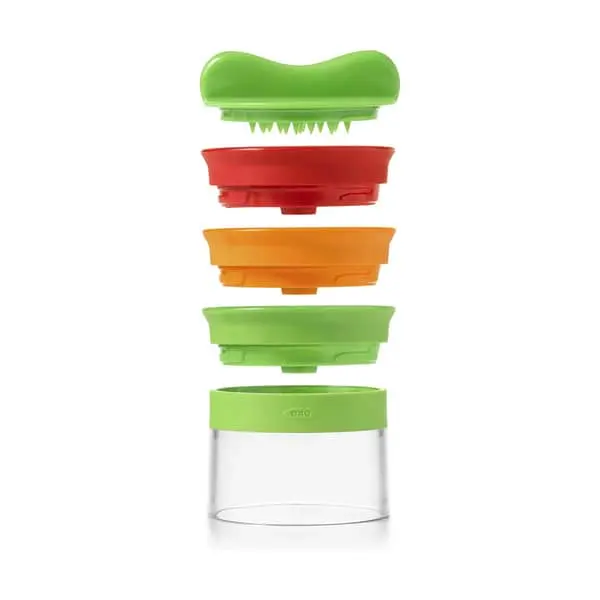 Med OXO Good Grips håndholdte spiralizer med tre udskiftelige knivblade, laver du hurtigt og nemt den lækreste grønsagsspaghetti, fettucine eller bred båndspaghetti. Du kan eksempelvis prøve at lave spaghetti af squash og servere med pesto og kylling – den er et sikkert hit for de fleste.
