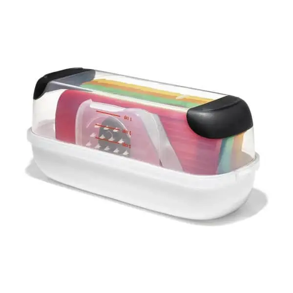 Dette sæt af fire forskellige rivejern fra OXO er samlet i en kompakt opbevaringsboks, hvor låget også fungerer som opsamler. De smarte non-slip fødder gør, at rivejernet ikke skrider fra side til side, når du bruger det. Det kommer med et groft og et medium rivejern, et til juliennestrimler og et glat, og selvfølgelig opbevaringsboksen. Alt i alt kommer dette til at være din nye yndlings køkkenmedhjælper, også kan den endda komme i opvaskemaskinen.