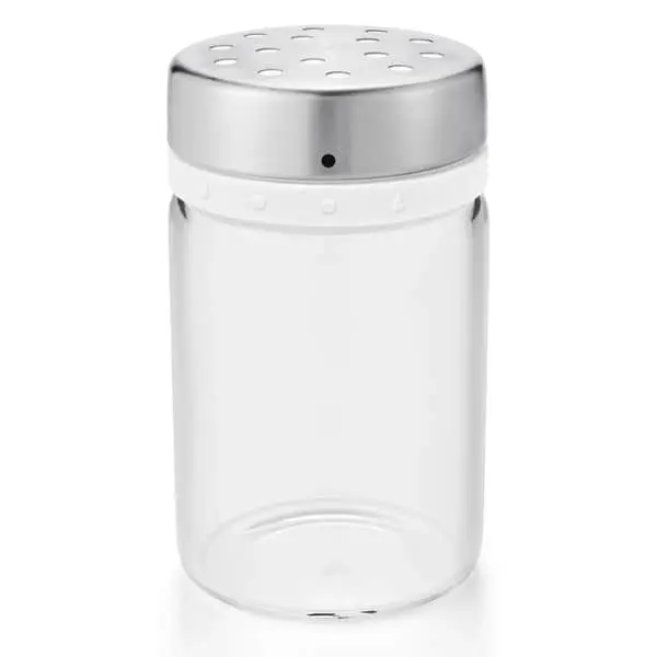 Strø-dåse med store og små huller, samt lukkefunktion Nem at betjene – drej låget til den ønskede hulstørrelse Bunden tåler opvaskemaskine