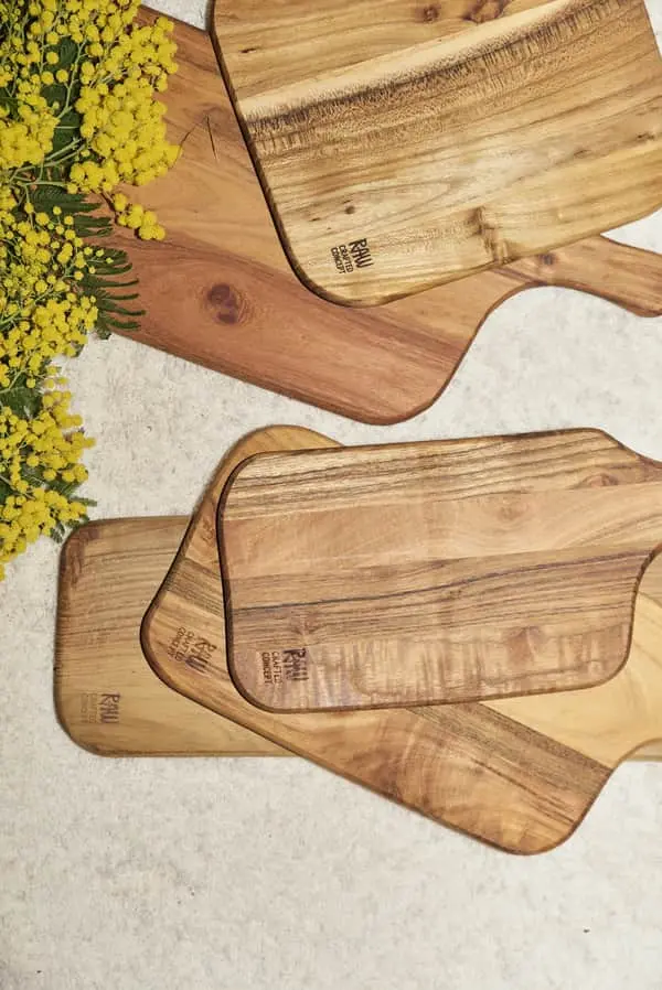 Skærebrættet er designet af teaktræ, som er yderst holdbart og solidt. Det bløde formsprog giver brættet et elegant udtryk, som pynter i hjemmet.