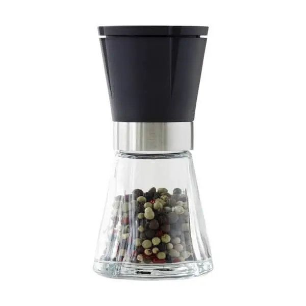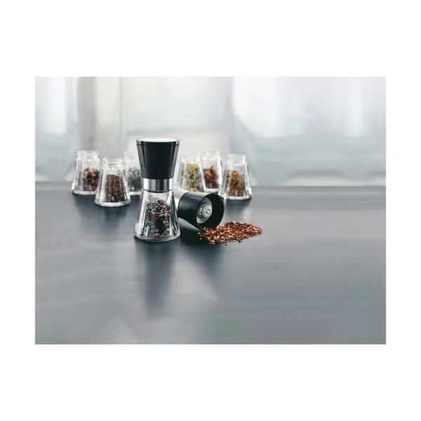 Krydderikværnen består af to dele: et opbevaringsglas og selve kværnen. Kværnen kan indstilles til, om den skal kværne krydderierne groft eller fint. Det keramiske kværneværk CrushGrind fungerer efter samme princip som en morter.