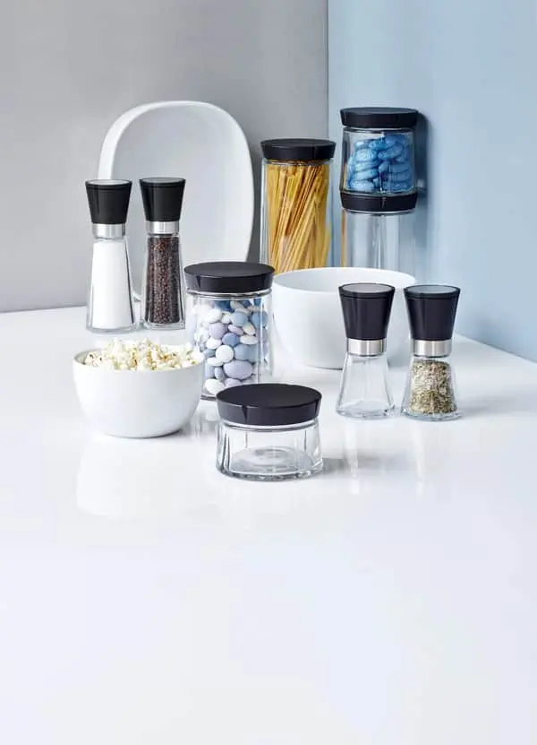 Rosendahl har allerede fyldt Atlanterhavssalt i glasset, der trods vokseværk stadig passer til det keramiske kværnværk med 25 års garanti.