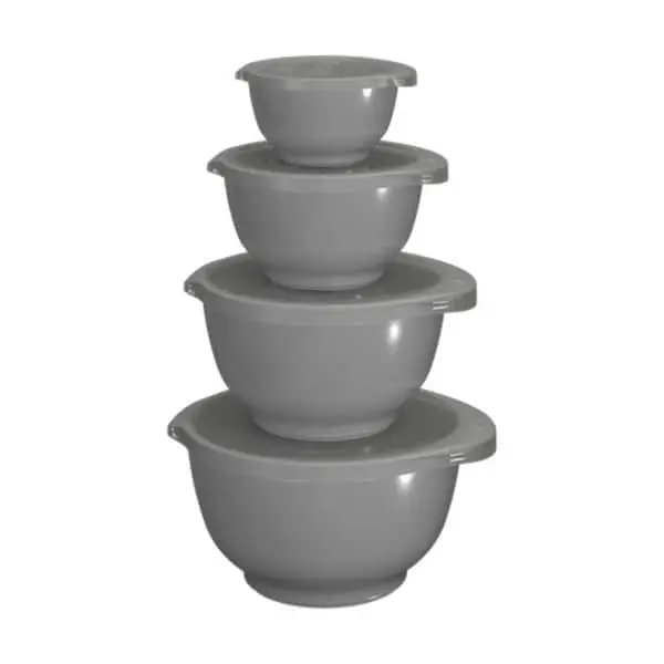 Skålene er udstyret med en skridsikker gummiring i bunden, så de står fast, når du rører ingredienser sammen i dem, eller når de står stablet og opbevarer madvarer i køleskabet.