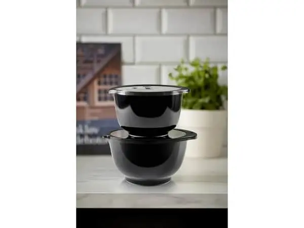 Klassisk design Sættet indeholder 2 skåle med låg Skålene rummer 2 og 3 liter