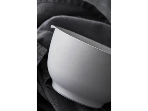 Skålen er produceret i melamin, som har den fantastiske egenskab, at det holder formen selv i berøring med meget varme fødevarer. Dette er en stor fordel i sammenligning med almindelig plastik, når man arbejder med varme fødevarer.