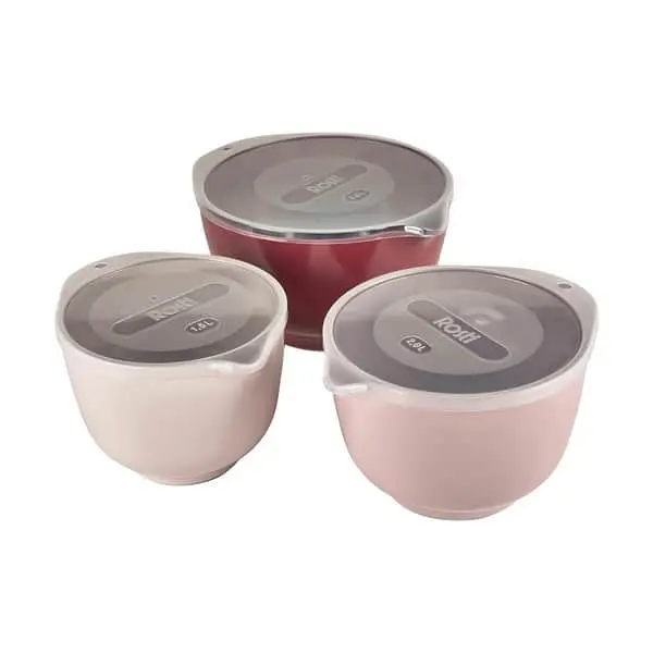 Klassisk design Sættet indeholder 3 skåle med låg Skålene rummer 1,5, 2 og 3 liter