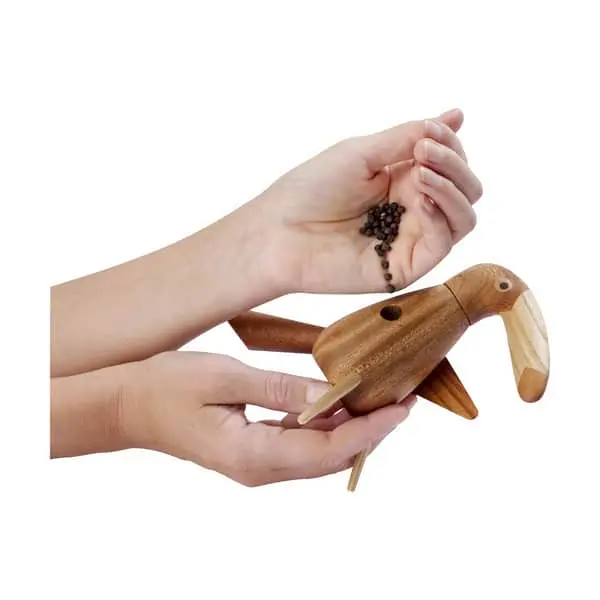 En peberkværn skal ikke kun være funktionelt, den skal også være smuk at se på. Peberfuglen er en dansk kvalitetspeberkværn i mahogni, ask, ahorn og valnød. Den hyggelige fugl er udstyret med den danskpatenterede, anerkendte Tucan Pepper Grinder som kværn.