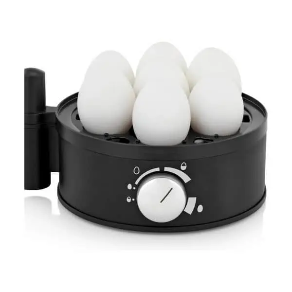 Æggekogeren har plads til 1- 7 æg. Du kan indstille den til kontinuerlig kogning, og den har en elektronisk timer. Du bestemmer selv, om du vil indstille den til blød, mellem eller hårdkogt, og den giver automatisk signal, når den er færdig.