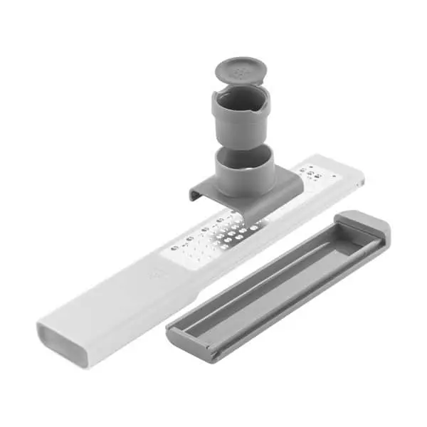 Rivejernet har tovejs funktionalitet med fingerbeskyttelse, så du kan rive i begge retninger, helt uden at skære fingrene i processen. Og med et fladt design kan du tilføje revet ost til pastaretten direkte over tallerkenen eller lige rive lidt muskatnød ned i gryden.